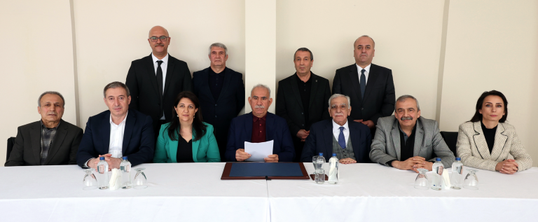 Following the meeting, the delegation returned to Istanbul, where they held a press conference to share Mr. Öcalan’s statement titled “Call for Peace and Democratic Society” with the public. The Kurdish version of the text was read by Ahmet Türk, while the Turkish version was read by Pervin Buldan.