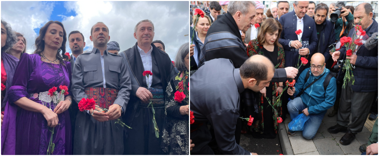 Diyarbakır’da sabahın erken saatlerinden itibaren yüz binlerce insan kapalı havaya rağmen Newroz alanına akın etti. Newroz programı saat 10:30’da Kemal Kurkut anmasıyla başladı. Eş Genel Başkanlarımız Tülay Hatimoğulları ve Tuncer Bakırhan ile beraberindekiler Kurkut’un katledildiği yere karanfil bıraktı.