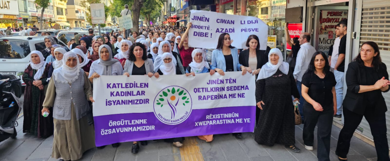 Barış ve Demokratik Toplum sürecinin konuşulduğu böylesi kıymetli bir dönemde kadınlara, kadınların haklarına ve kazanımlarına yönelik gerçekleştirilen saldırılar, özel savaş politikalarının devrede olması sürece zarar vermektedir. Toplumun yarısı olan, barışın öznesi kadınlara yönelik susturma, sindirme politikaları karşısında isyanımızı büyütüyor özsavunmamız örgütlenmemizdir diyoruz.