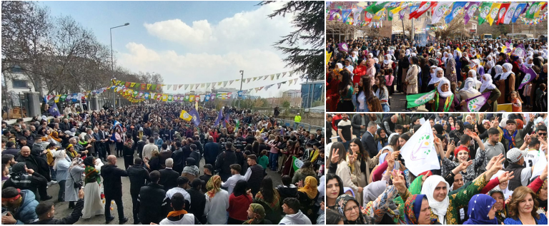 Eş Genel Başkan Yardımcımız Ebru Günay, Nusaybin’de katıldığı kutlamada, Newrozun Kürtler için serhildan olduğunu söyledi. Kürtlerin 100 yıldır alanlarda mücadele verdiğini kaydeden Günay, Öcalan'ın yüzyılın çağrısını yaptığını belirtti. Öcalan'ın çağrısının kadınlar, gençler ve herkes için olduğunu ifade eden Günay, "Sayın Öcalan yeniden rolünü oynadı. Bizler de barış ve özgürlük için onun etrafında toplanıp özgürlük halayı çekelim" dedi. Eş Genel Başkan Yardımcımız Mehmet Rüştü Tiryaki ise, "Kürtlerin tarihi, Newroz tarihidir; Newroz tarihi de Kürtlerin tarihidir. Newroz Kürtler için direniştir. Nisêbîn 30 yıldır direniyor ve Newroz için mücadele ediyor. Ufukta özgürlük güneşi göründü. 27 Şubat'ta bir kapı açıldı, Kürt sorununu çözmek için yeni bir kapı açıldı. Hak almak için direnmek gerekiyor. Direnmeden olmuyor. Egemenlerin siyaseti halen değişmedi. Bir kapı aralandı ama siyasetleri değişmedi. Bugün de İstanbul Büyükşehir Belediye Başkanı gözaltına alınmış. Kayyım siyasetleri devam ediyor. Mêrdîn'de, Êlih'te, Wan'da devam ettiği gibi. Operasyonları da tutuklamaları da devam ediyor" şeklinde konuştu.